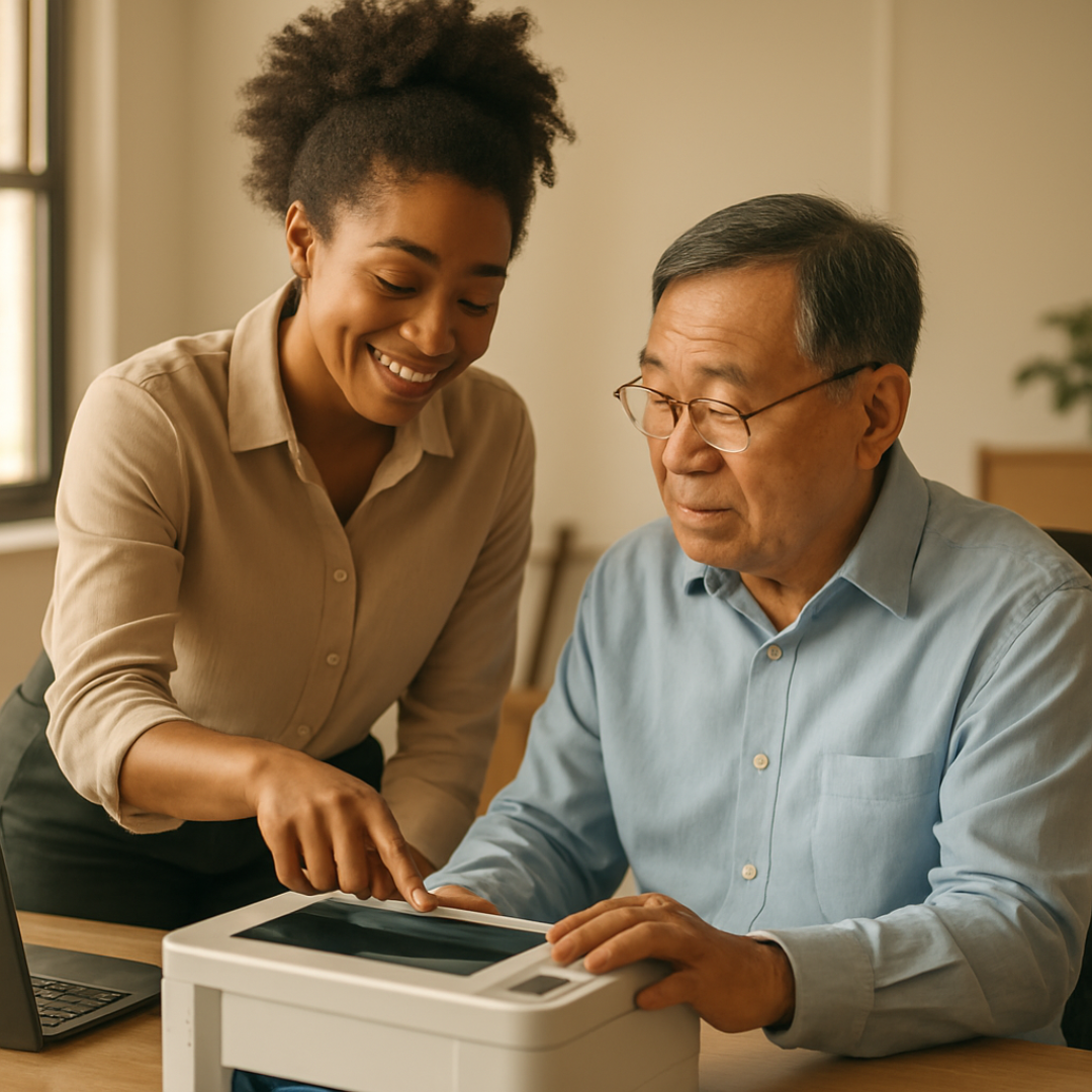 Every senior learns at their own pace, which is why our personalized tech support for seniors focuses on clear explanations and hands-on guidance. Our team helps older adults learn the digital tools they need to communicate with family, manage daily tasks, and enjoy the benefits of modern technology.